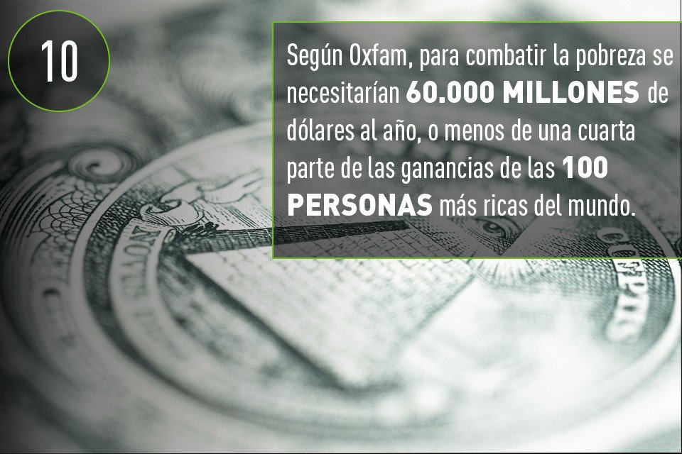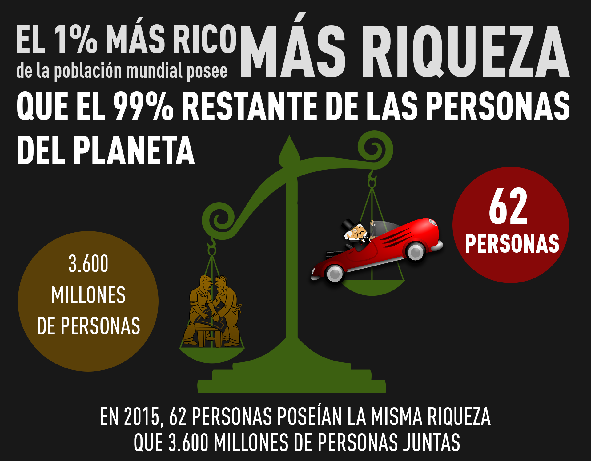 Las cifras que ofrece el informe son tan interesantes como desoladoras: en 2015, 62 personas poseían la misma riqueza que 3.600 millones de personas juntas, lo que equivale a la mitad más pobre de la humanidad. Y no hace mucho, en 2010, esta relación de desigualdad era de 388 personas contra la mitad de la población del planeta.