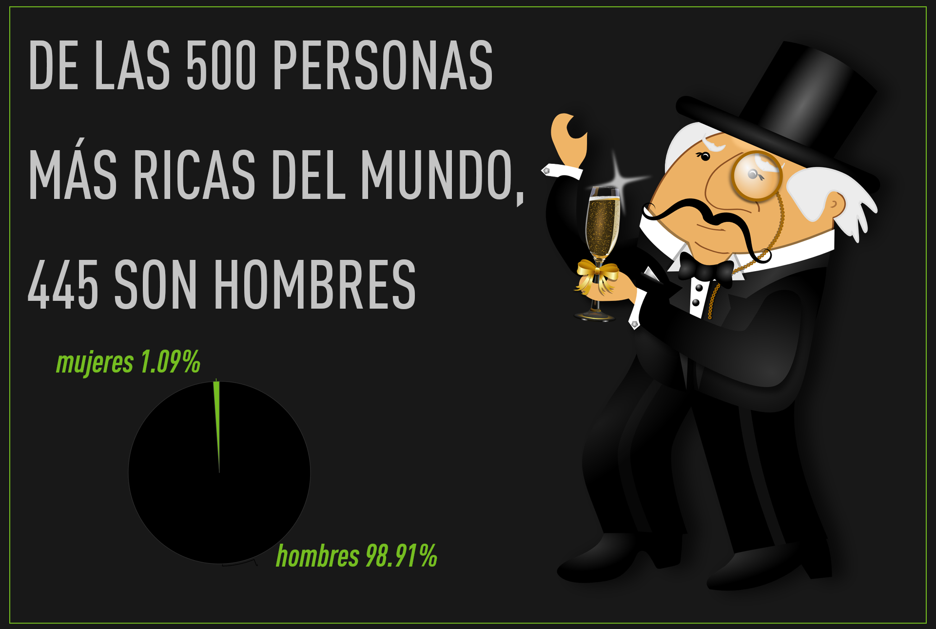 - La desigualdad económica también agrava las desigualdades existentes entre los grupos sociales, especialmente la desigualdad de género: de las 500 personas más ricas del mundo, 445 son hombres.