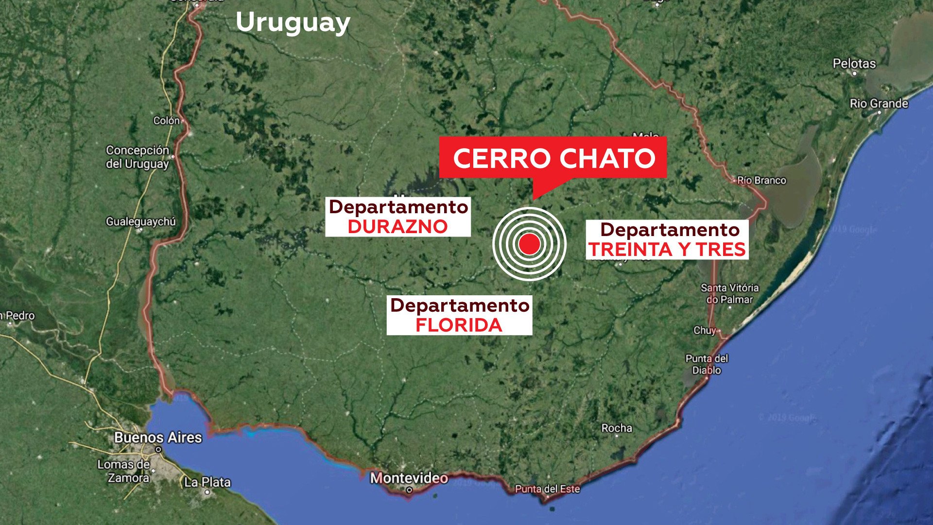 Cerro Chato nació como un lugar de paso ligado a la ganadería. Fue con la llegada del ferrocarril a principios de 1900 que se empezó a formar el primer caserío. Creció tan desordenado que su territorio quedó mezclado en medio de tres jurisdicciones distintas. Es decir, que si uno mira un mapa, su geografía está sobre los departamentos de Florida, de Durazno y de Treinta y Tres. A la vez. En la intersección de las tres localidades hay una plaza.