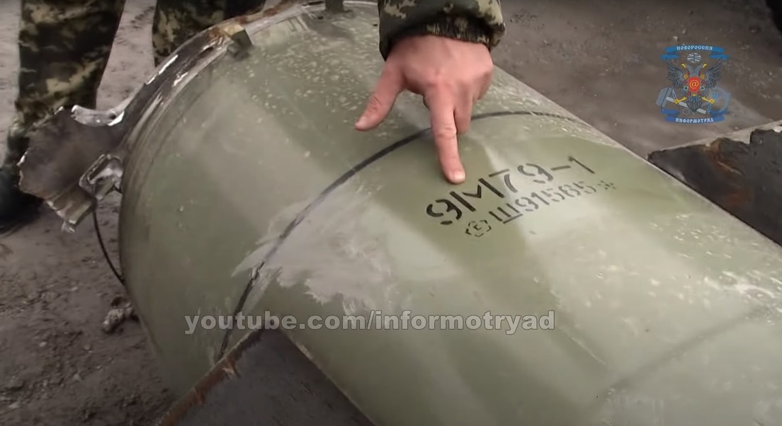 La noche de este viernes, periodistas del canal italiano La7 pudieron grabar el proyectil y lo mostraron en un reportaje, en el que se puede ver que se trata de la versión 9М79-1 del misil táctico Tochka-U, con el número de serie 'Sh91579' ('Ш91579').