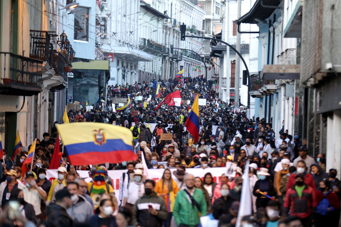 El jueves también hubo una movilización en la ciudad de Cuenca, al sur del país, que estuvo encabezada por estudiantes y autoridades de la Universidad de Cuenca, acompañados de sindicalistas agrupados en el denominado Frente Popular, que integra a trabajadores de la salud, maestros, entre otros.