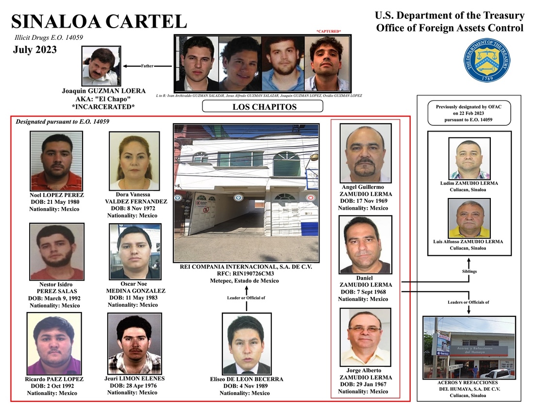 A ellos se suman Ángel Guillermo, Daniel y Jorge Alberto Zamudio Lerma, hermanos de Ludim y Luis Alfonso Zamudio Lerma, quienes en febrero de este año fueron acusados de suministrar precursores químicos al Cártel de Sinaloa para la fabricación de drogas a través de su empresa Aceros y Refacciones del Humaya, S.A. de C.V., la cual también fue sancionada.