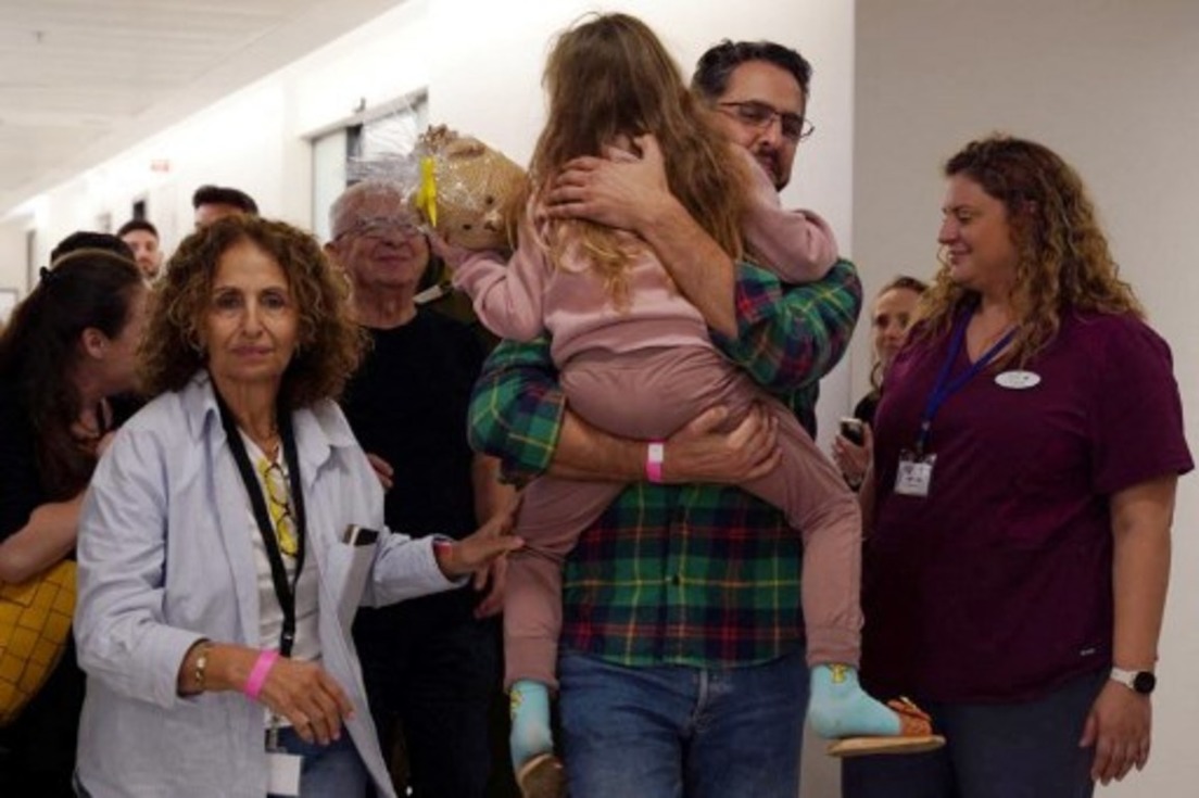 Yoni Asher se reunió con su esposa, Doron Katz-Asher, y con sus dos hijas, Raz y Aviv, de cinco y apenas dos años de edad, que fueron secuestradas por Hamás.