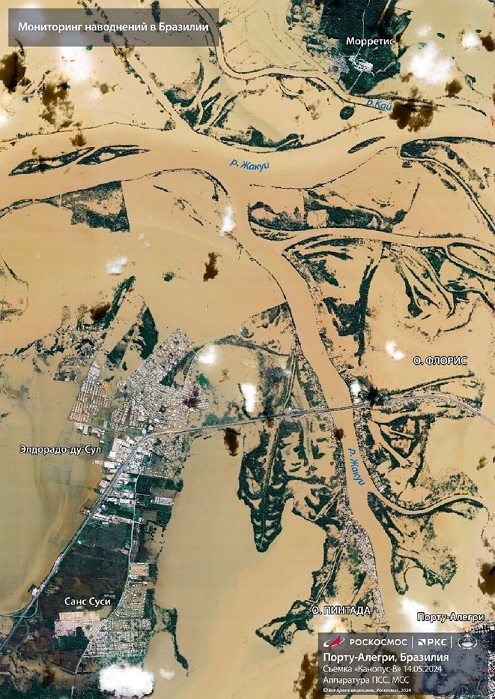 "Debido a las lluvias anormalmente intensas que empezaron a finales de abril, el estado de Rio Grande do Sul se inundó, lo que ha provocado deslizamientos de tierra, carreteras arrasadas y el derrumbe de puentes y presas en toda la región", señaló Roscosmos.