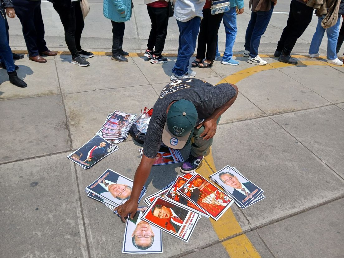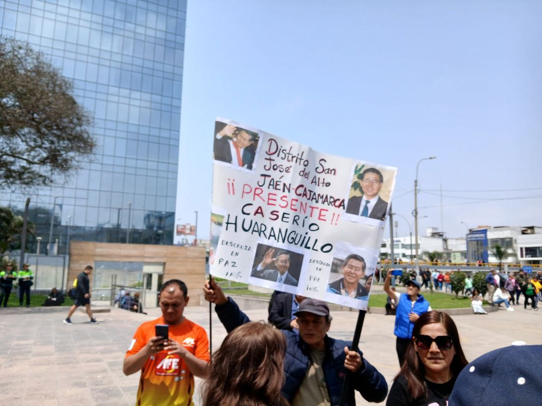 El jueves las horas pasaban en San Borja, los mercaderes aprovechaban para vender objetos alusivos a Fujimori, los asistentes hacían cola, intentaban taparse del sol y, por momentos, debatían sobre lo que se avecina para el movimiento fujimorista.