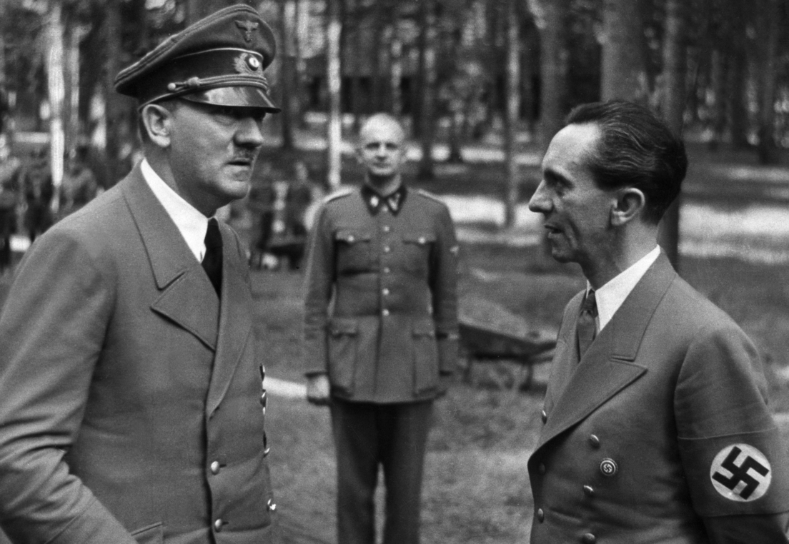 Adolf Hitler, Joseph Goebbels y Heinz Linge, el 25 de julio de 1944. Gettyimages.ru Según el historiador Oleg Matvéyev, Linge, siguiendo las órdenes de Hitler, entró entonces en la habitación y le disparó en la sien derecha con su propia pistola.