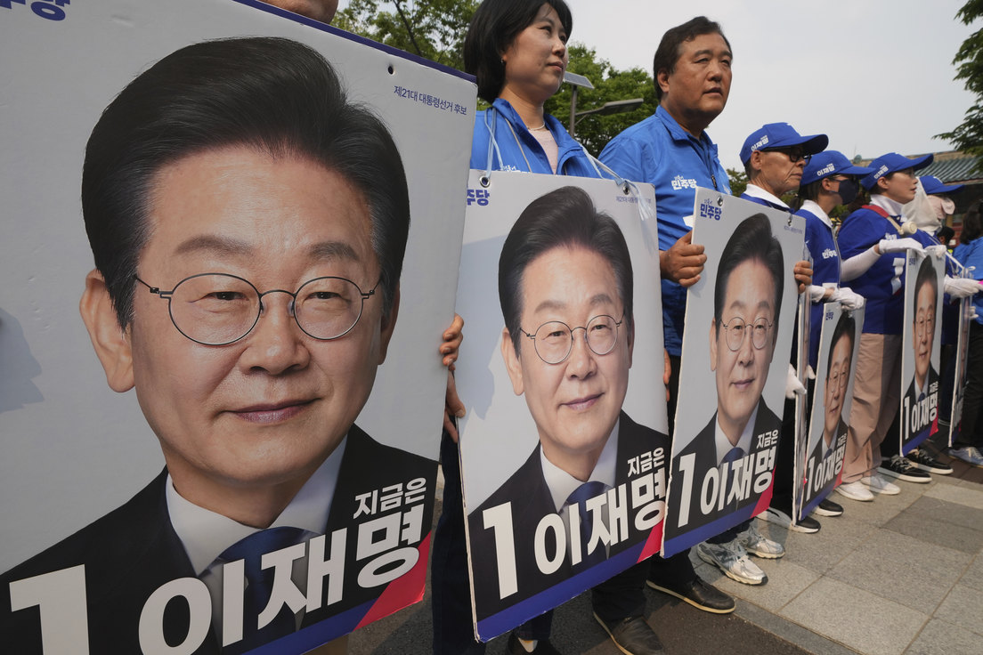 En su compaña electoral, Lee Jae-myung, que fue gobernador de la provincia de Gyeonggi y alcalde de la ciudad de Seongnam, prometió acabar con las "fuerzas insurrectas" lideradas por Yoon Suk-yeol tras su destitución.