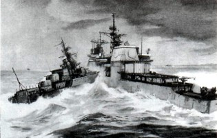 Sin embargo, el buque patrulla seguía navegando. Y el peligro aún no había terminado para la relativamente pequeña nave soviética, ya que el crucero y el destructor estadounidenses intentaron a aplastarla por ambos lados.