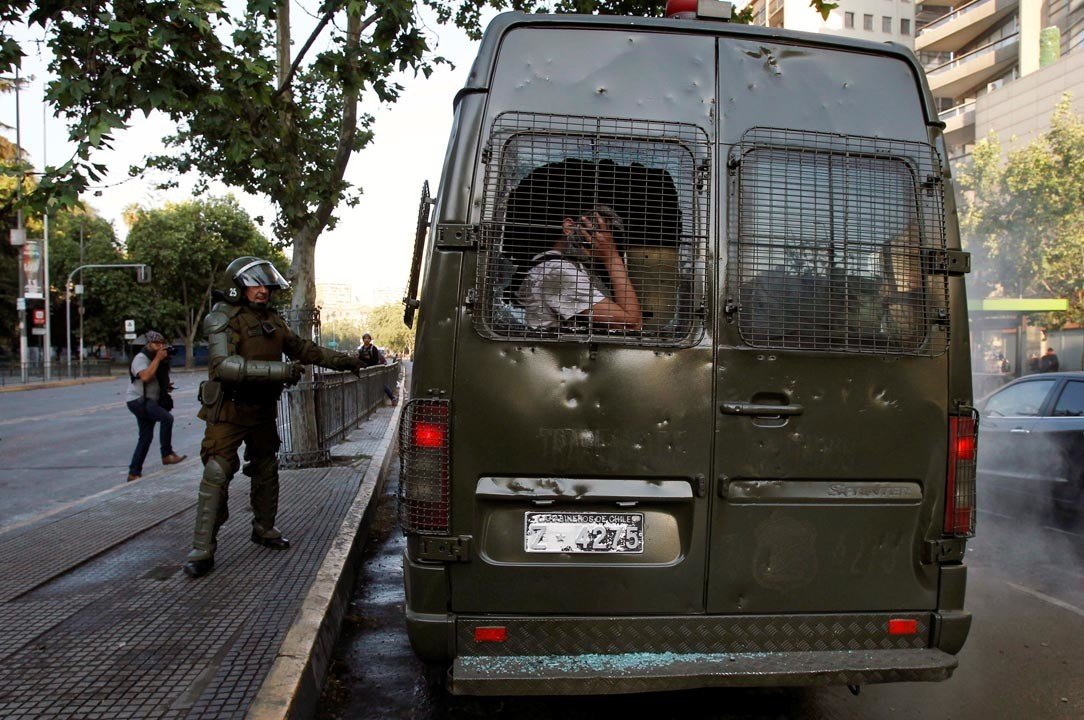 El presidente chileno, Sebastián Piñera, ha decretado este viernes el estado de emergencia ante el caos que se registra en la capital, Santiago en Chile, escenario de incendiarias protestas de estudiantes contra el alza del precio del pasaje en la red de transporte. Para mostrar su repulsa, los manifestantes se saltan los vallados y pasan al metro sin pagar. Sin embargo, la dimensión más agresiva de la protestas se tradujo en el incendio de estaciones de metro, buses y edificios.