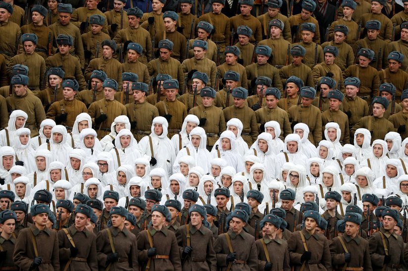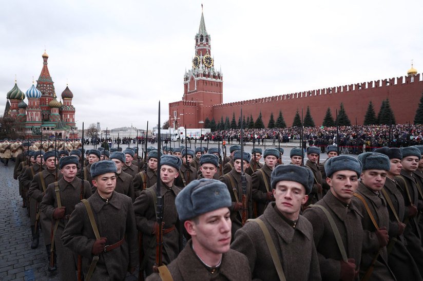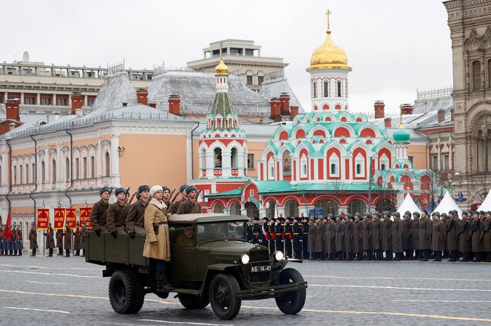 Moscú acogió hoy una marcha para conmemorar el histórico desfile que la URSS celebró en la Plaza Roja el 7 de noviembre de 1941, en el cual participaron más de 28.000 soldados. Muchos de ellos partieron directamente a luchar contra las tropas de la Alemania nazi, que se encontraban a apenas decenas de kilómetros de la capital soviética. La parada militar resultó muy importante para elevar la moral del Ejército Rojo y de todo el país, ya que mostró al mundo que no se daba por vencido.