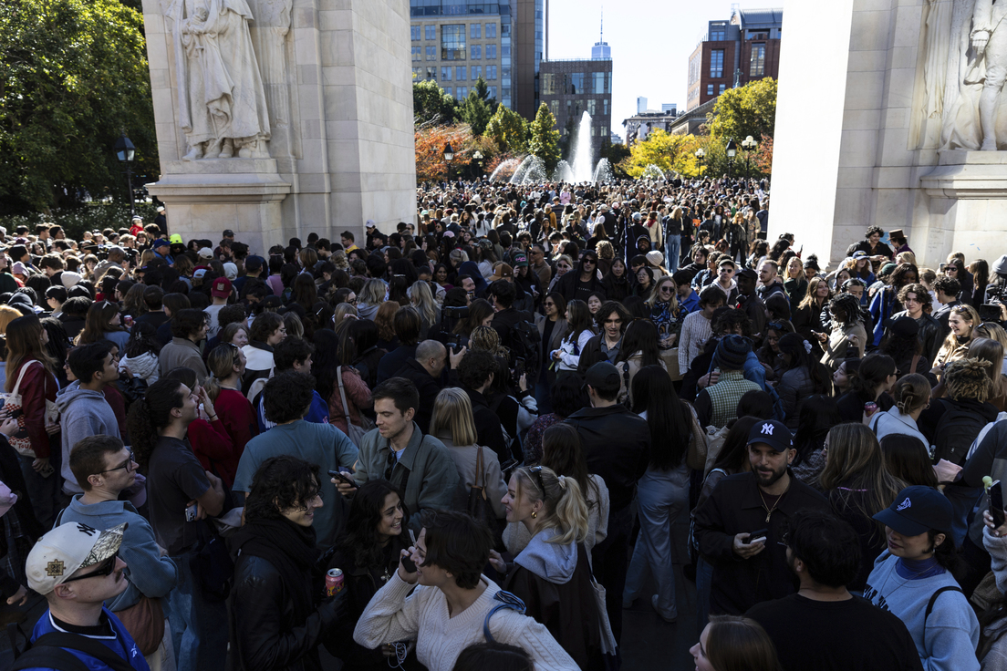 Rodeado por guardaespaldas, Chalamet salió a saludar a sus seguidores, algunos de ellos vestidos como héroes de sus películas, y posó con ellos en fotos. Sin embargo, cuando los fans empezaron a pasear por una alfombra roja en el parque de Washington Square, la Policía ordenó que la multitud se dispersara.